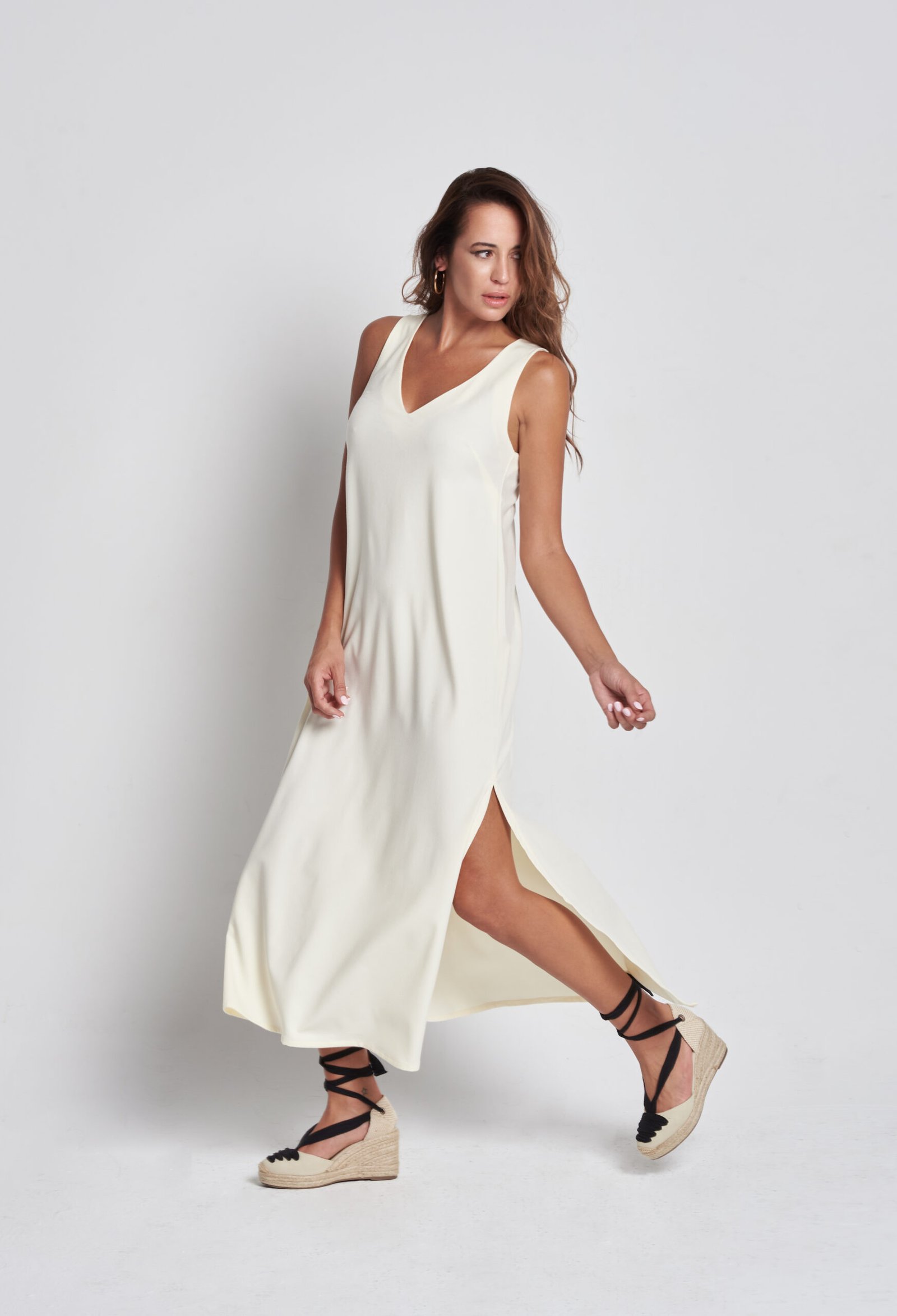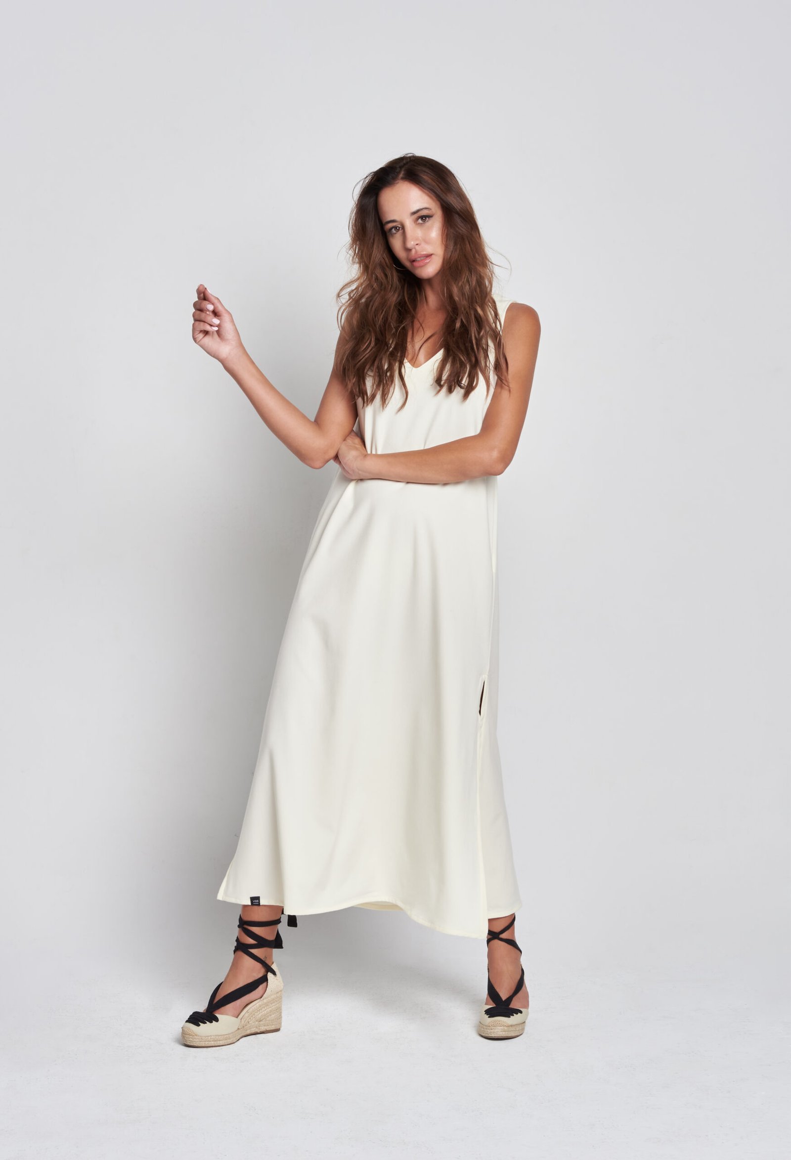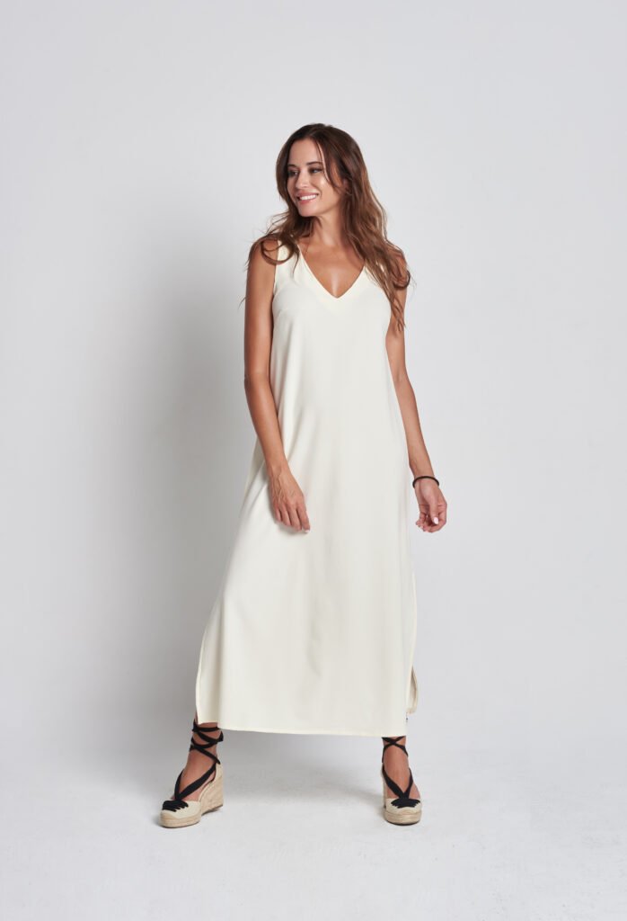 Synonymous with purity, neutrality and sophistication. We have made this dress with the pillars of the MY ESSENTIALS collection, transmitting freshness, confidence, tranquility and all the strength that emanates from a woman, captured in this design.